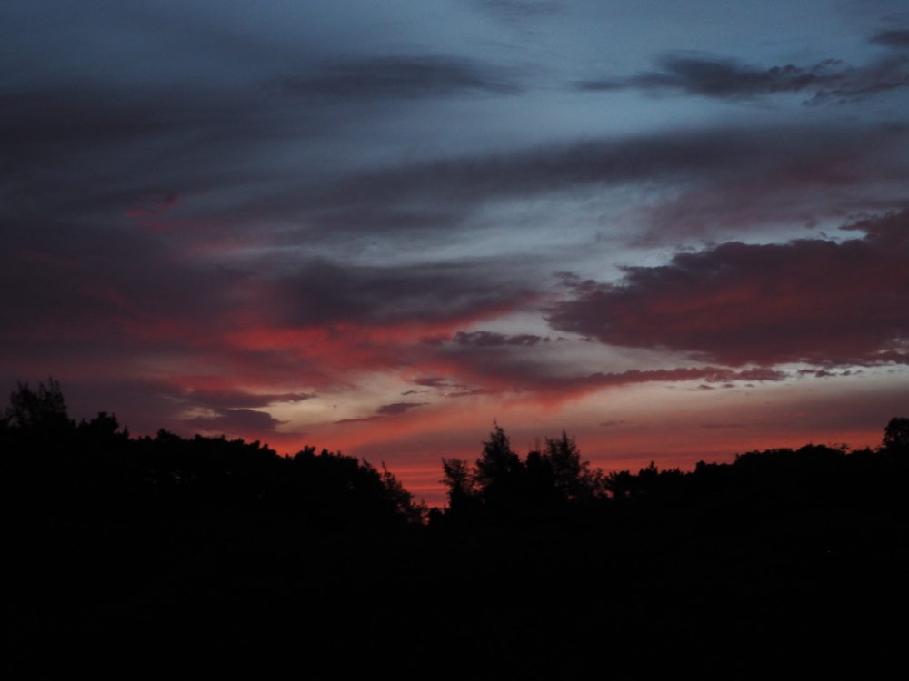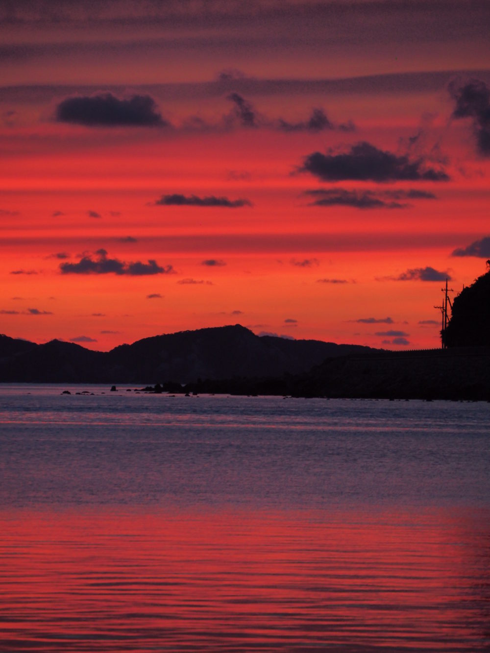 阿嘉大橋まで行くとどんどん日が昇ってきて、次々に雲が焼け、真っ赤な空に!