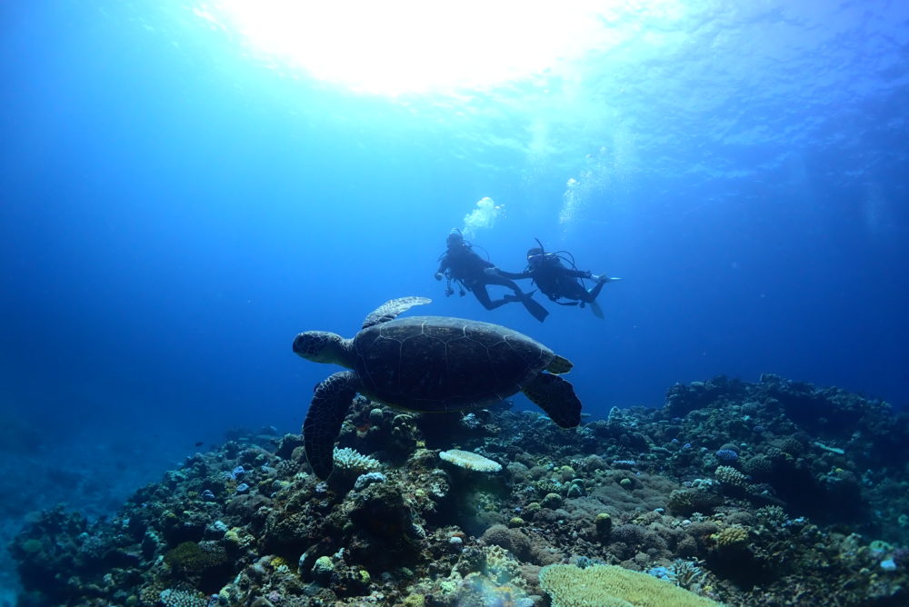 久しぶりの阿嘉の海でシーサーの同期なので僕がご案内