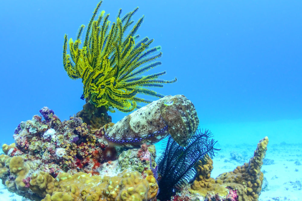 またしてもマダラトビエイが僕らの周りをウロウロと!