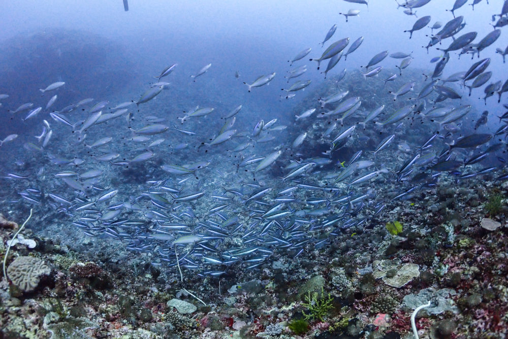 うじゃうじゃとグルクンやウメイロの群れにも囲まれて盛りだくさんです!