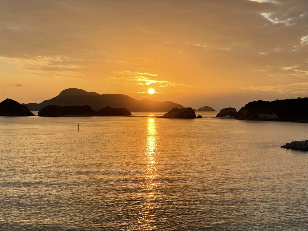 冬になってから、ヒズシでは久場島にかかって日が沈むところが見えないので