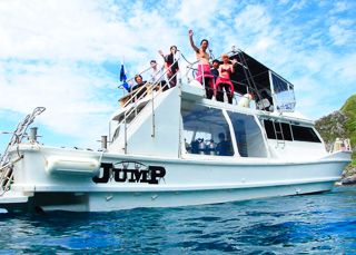 シーサー阿嘉島店のJUMP号なら多少の時化や、外洋の波の高い海域も、大きな船体で楽々乗り越えられます。