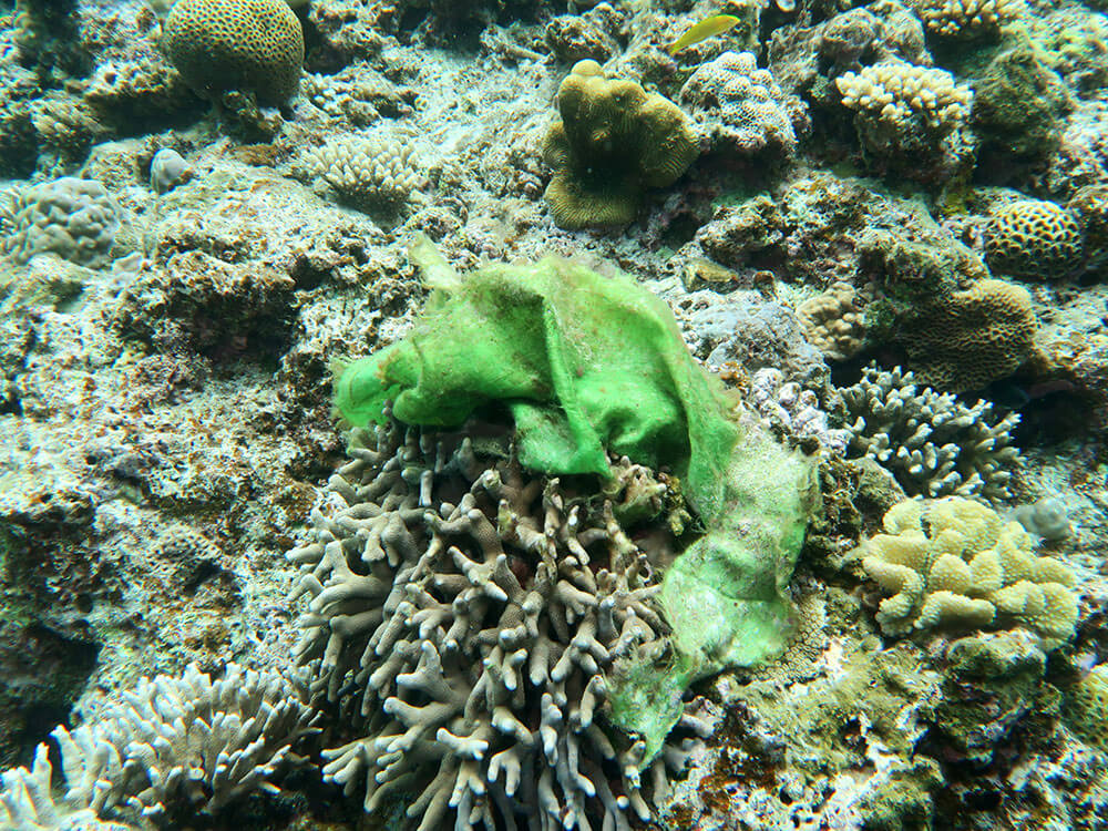 私たちが潜る慶良間諸島でも実際にペットボトルが水底に落ちていたり、釣り糸などがサンゴに絡まっているのをよく目にします。