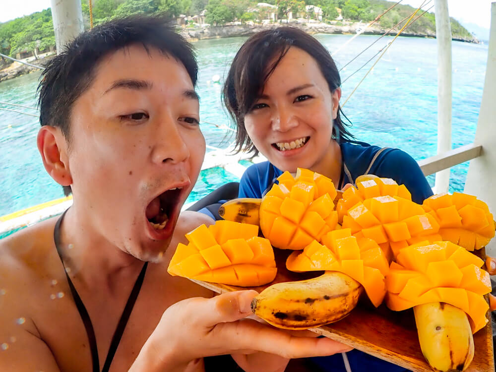 デザートは南国フィリピン産の甘〜〜〜いマンゴー!思いっきり味わい尽くしてください!海の上で食べるとおいしさ倍増です♪