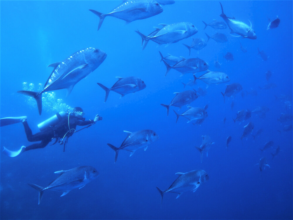 いつでも会える100匹のロウニンアジやギンガメアジの群れ。ダイナミックなイワシの大群、マニア必見の珍種、希少種、固有種。