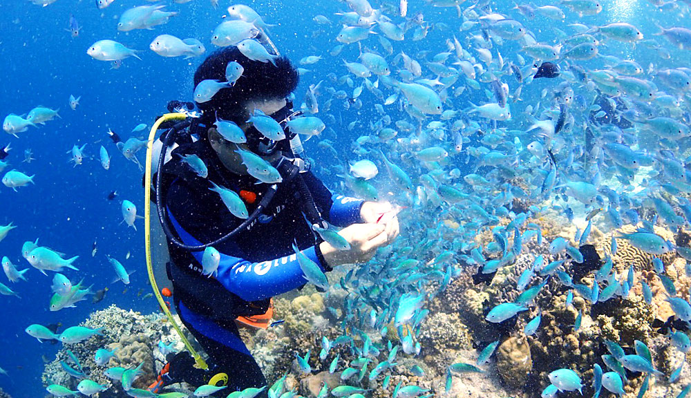 地球上で無重力を体験。水中で呼吸が出来て、目の前にはカラフルな魚たち。普段の生活とはかけ離れた世界を気軽に味わえます。
