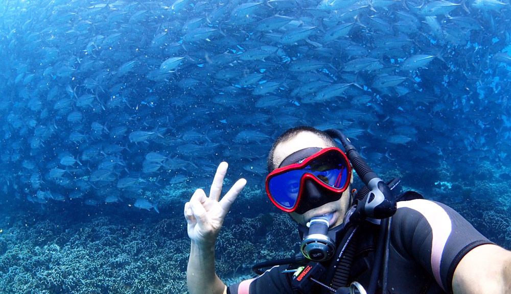 バンカーボートからエントリーし、しばらく泳ぐと目の前に巨大なジンベイザメが現れます!圧巻です!