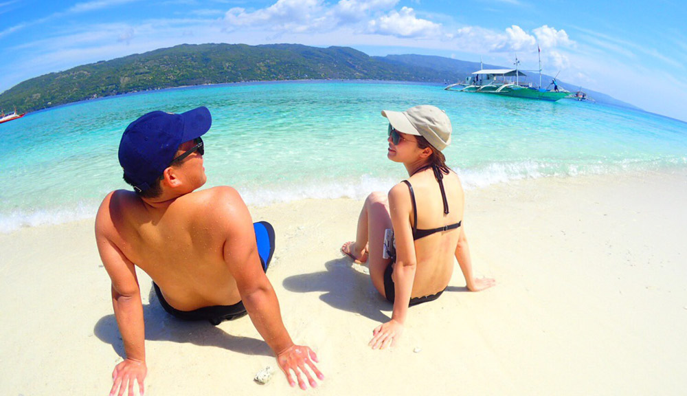 真っ白な砂浜と青い海に癒されます。カメラを持ったガイドがあなたの写真を沢山お撮りします!自慢したくなる一枚をセブの思い出と一緒にお持ち帰りください!