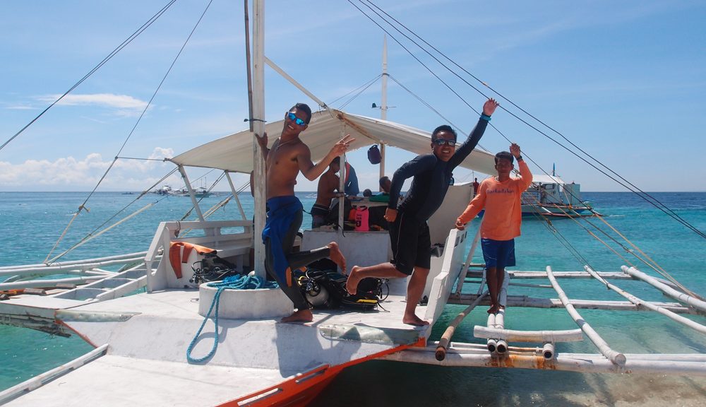 オスロブに到着したら健康チェックと参加申し込みをご記入いただきます。その後、シーサー専用ボートに乗り込み器材チェックしたら出港です。