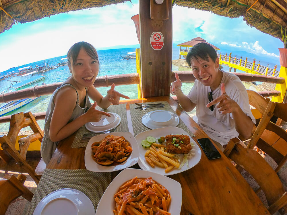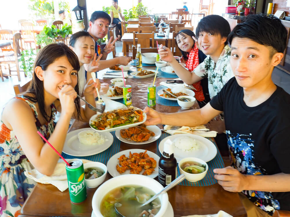 シャワーを浴びて着替えたら海辺でランチです。日本では馴染みが少ないフィリピン料理を堪能します!