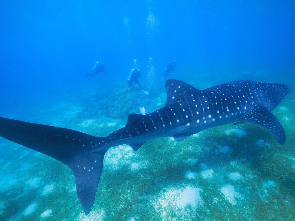 ビーチからエントリーしてしばらく泳ぐと目の前にジンベエザメが現れます!あまりの迫力に大興奮!