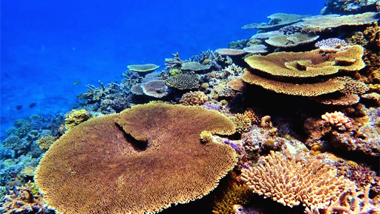 An extensive variety of corals and hundreds of double-lined fusiliers and dogtooth tunas can be spotted in theses shallow waters.