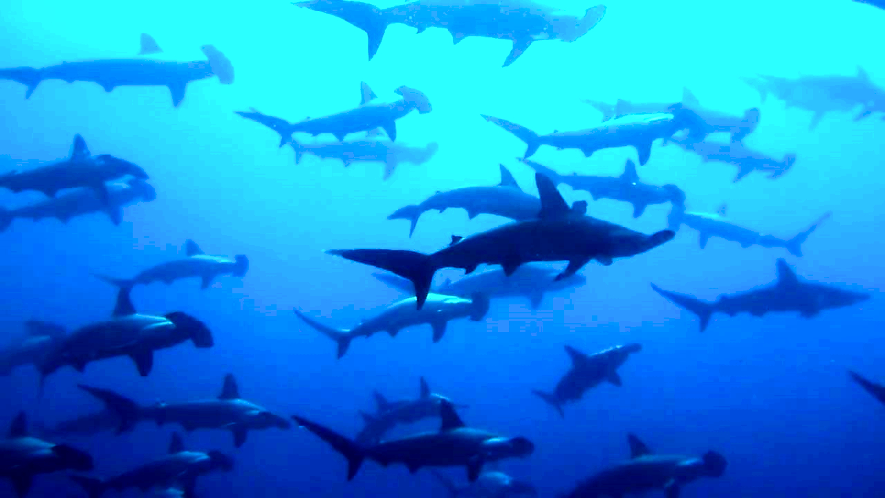 You can encounter a hundred of hammer head sharks in winter. Available to advanced divers because of its strong currents.