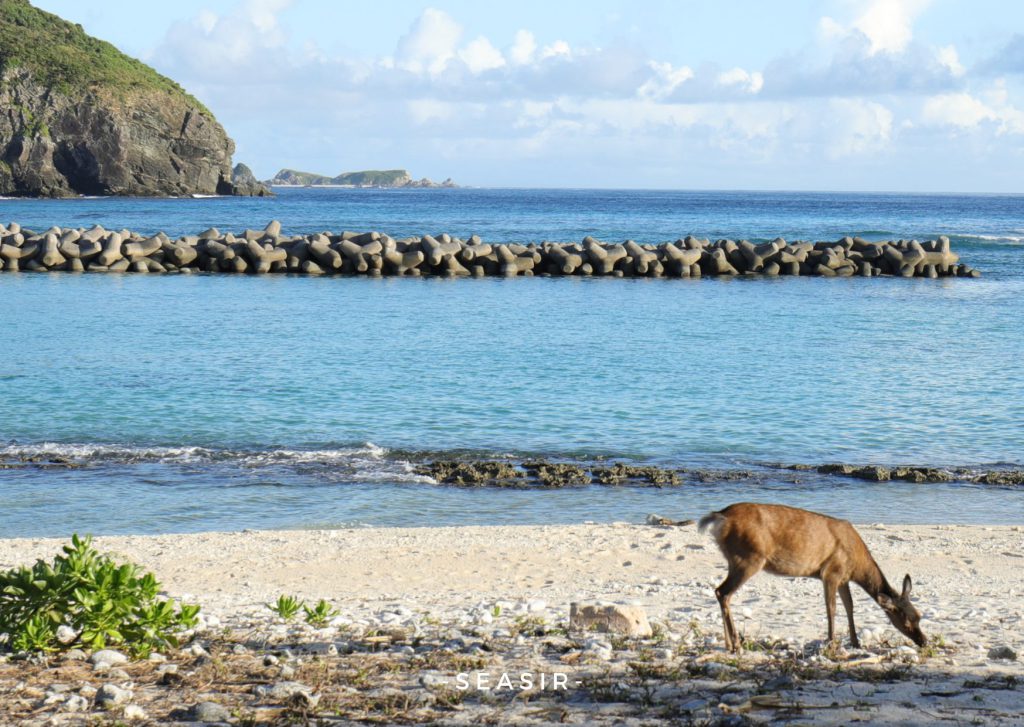 ・野生天然記念物『慶良間鹿』經常悠閒的在路上或海邊散步