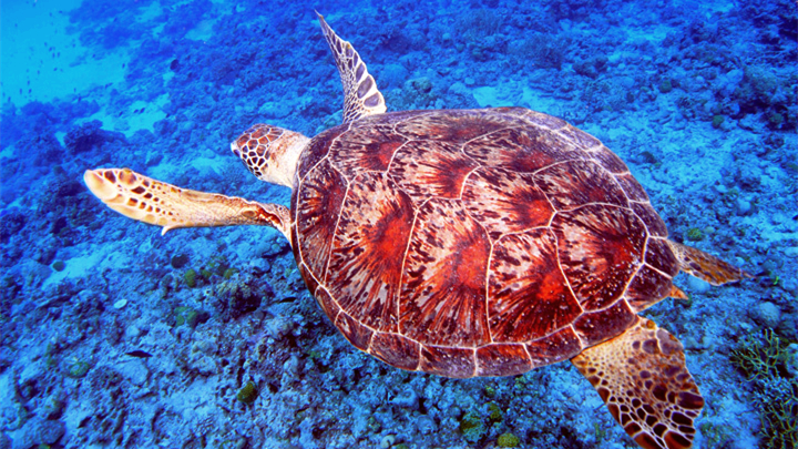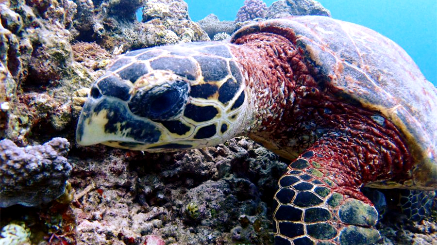 在特定潛點幾乎都可以看到牠們的蹤影。有時可見到牠們用尖銳的嘴叼出珊瑚缝隙中的食物。玳瑁的警惕性不强,很容易接近。