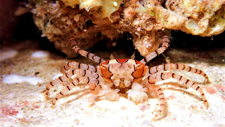 常躲在巨石下,會將海葵夹在螯上,以防外來敵人的捕食。而牠們舉著海葵威嚇敵人的樣子就像啦啦隊長。