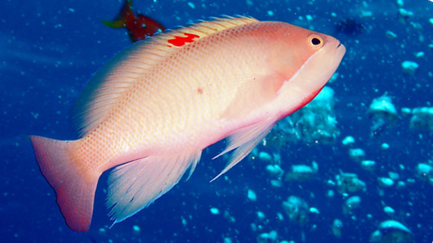 深紅色是牠們的特徵,為擬花鮨一種。與其他擬花科相似,以雄性為首會形成一個“後宮”的社會型態。