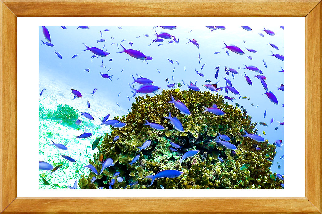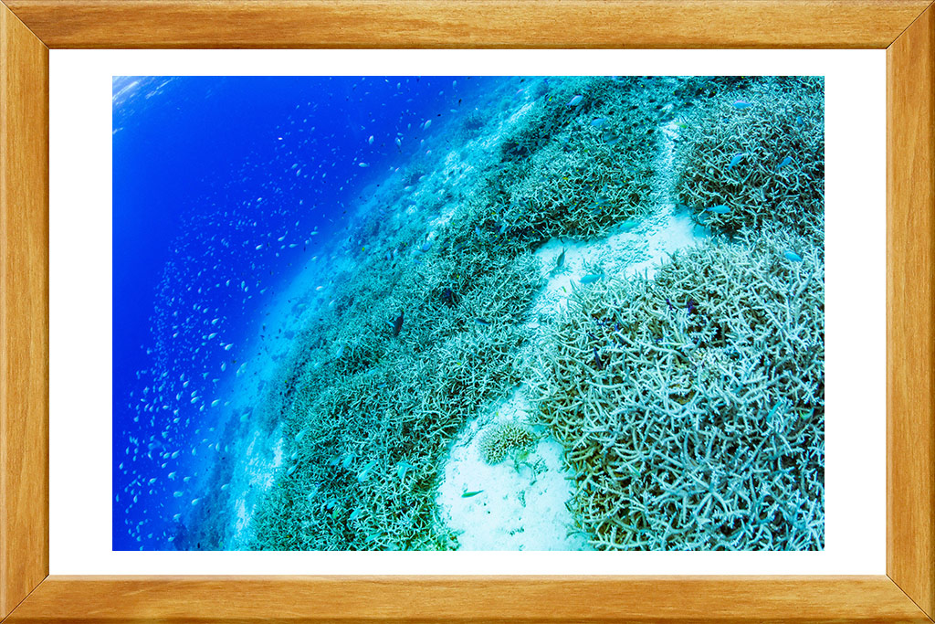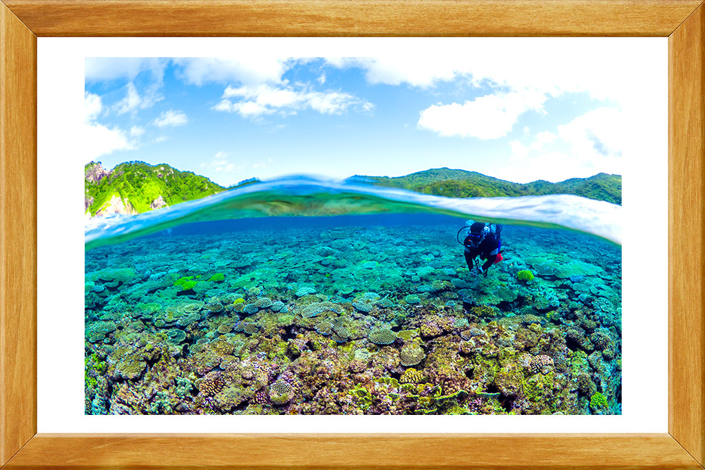 ― 審査員より― 一目見た瞬間引き込まれる色鮮やかな珊瑚。視線を上げれば新緑の山々と梅雨を跳ね返す青空。水中と地上を同時に切り抜くお見事な一枚でした!