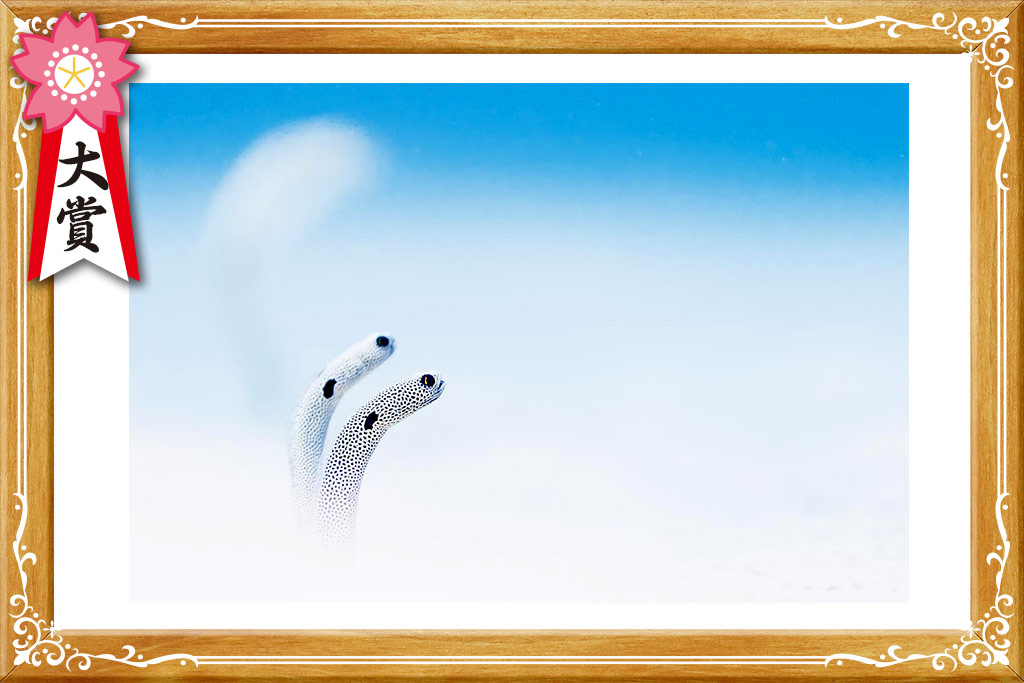 ―審査員より― 沖縄の梅雨が終わり、入道雲が立ち上がる夏の空を連想させるようなチンアナゴたちですね。人気だけれども、ベテランダイバーにはありきたりと思われるチンアナゴに、こんな表現の仕方があったとは!