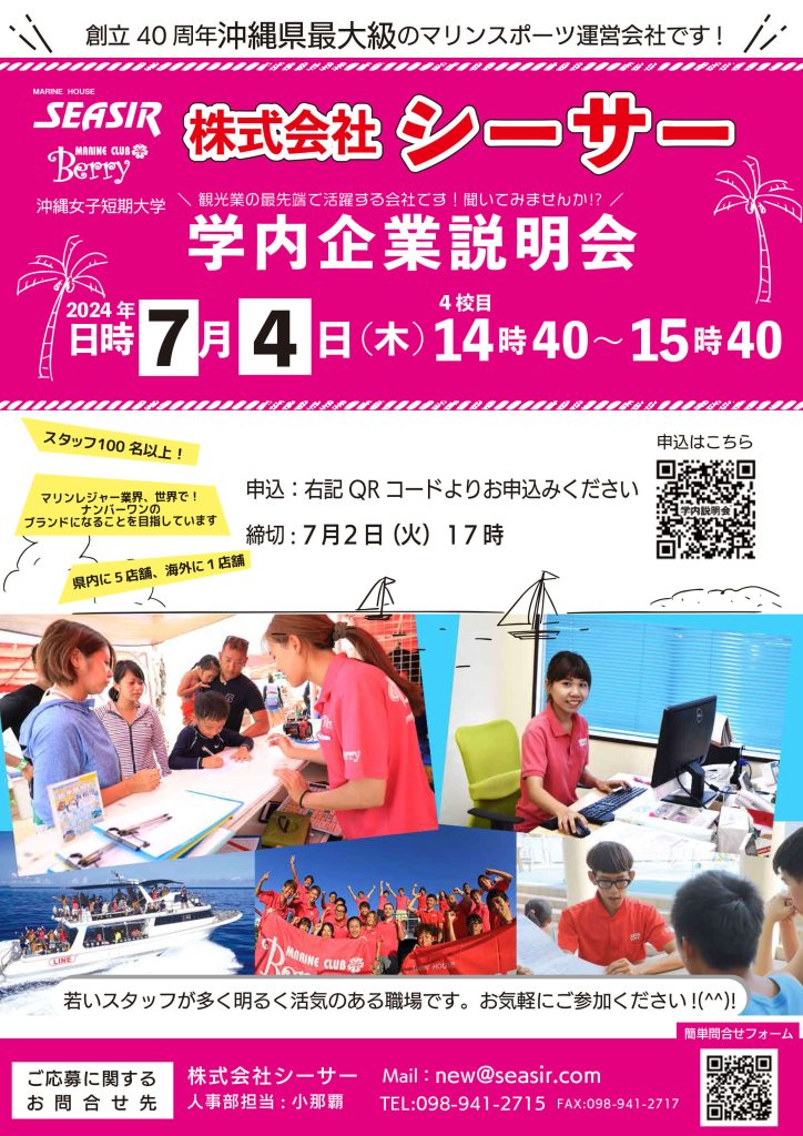 学内企業説明会 沖縄女子短期大学 2024年7月4日