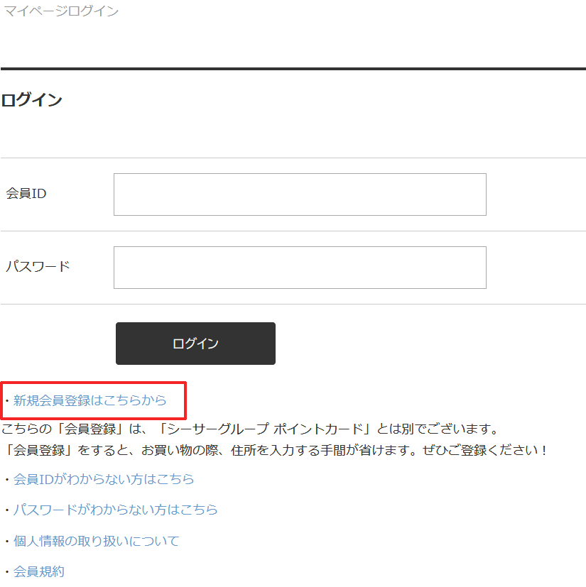 海人商店通販サイトへログイン後「新規会員登録はこちらから」をクリック