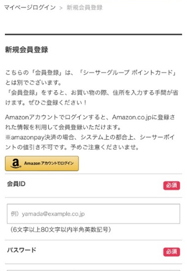 ⑤.海人商店通販のサイトにて「新規アカウント」を作成してください