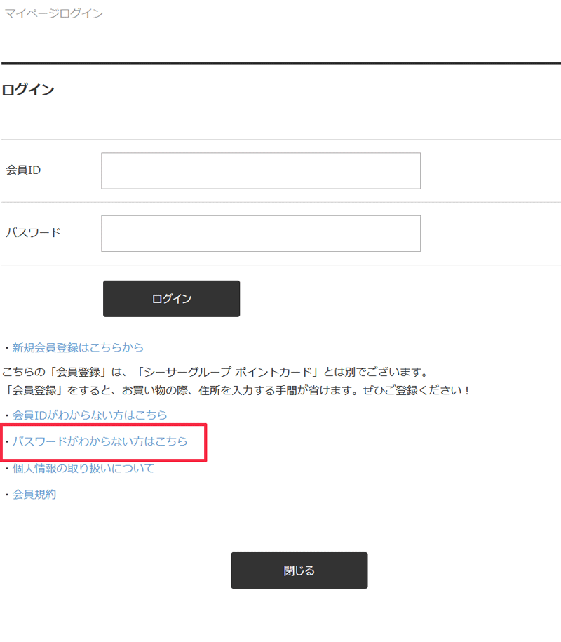 「パスワードがわからない方はこちら」をクリック