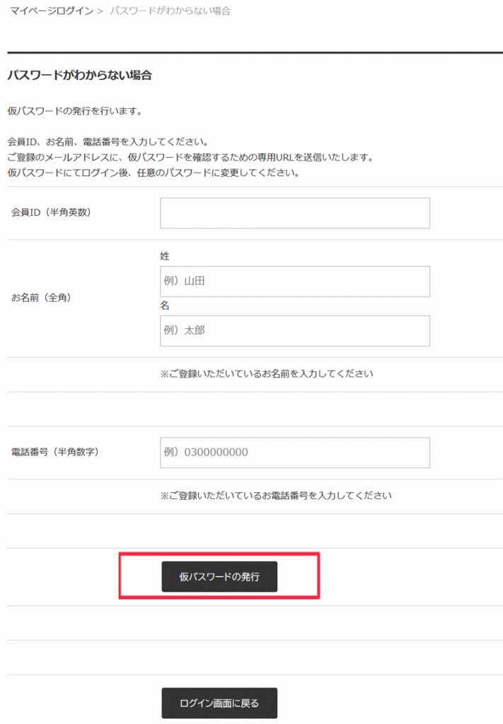 - ステップ2仮パスワードの発行