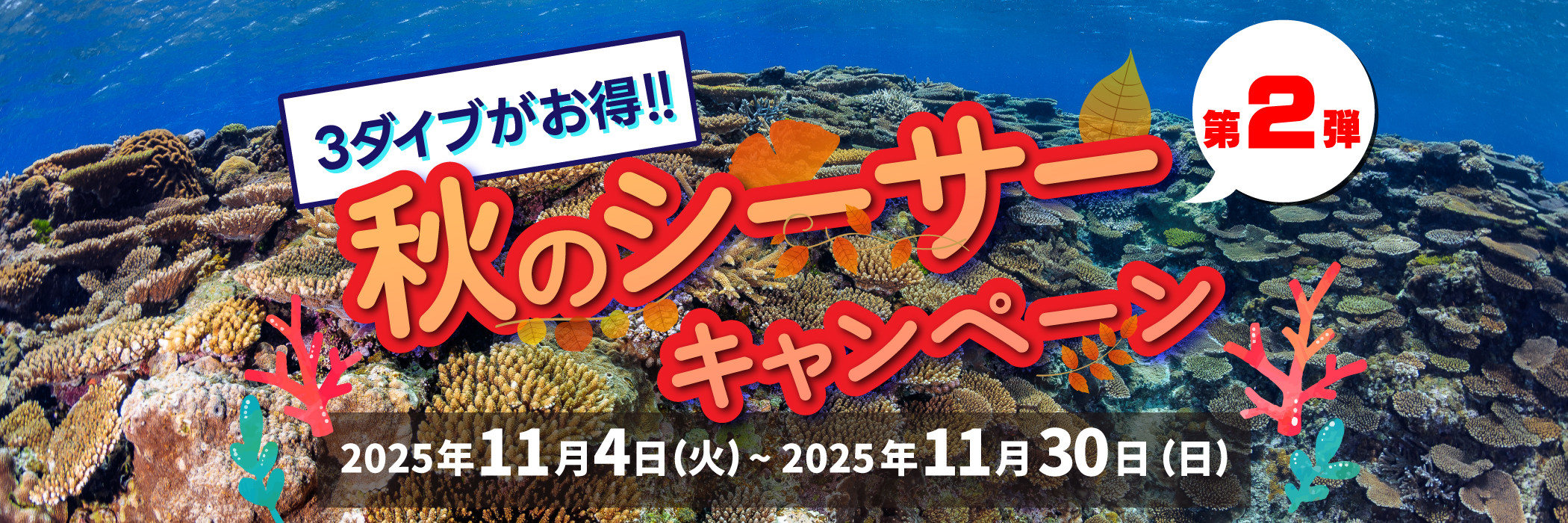 秋は海が透明度抜群!ベストシーズンの慶良間を、思う存分3ダイブで満喫していただけます。