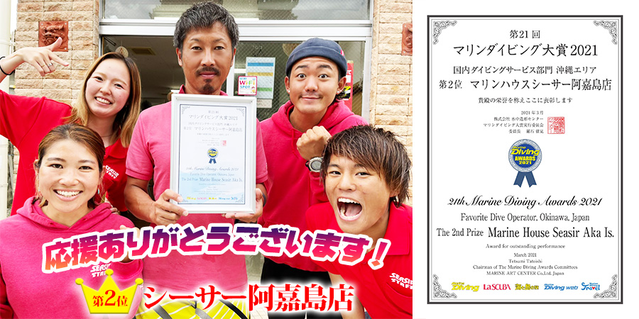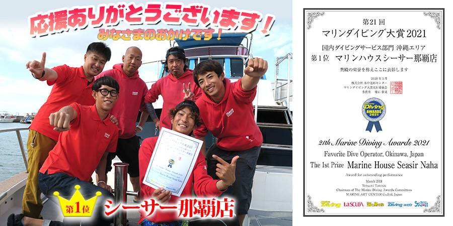 シーサー那覇店は2003年の初受賞から、今年で「国内ダイビングサービス部門」において、11年連続で1位受賞、2014年・16 年は1位を逃したものの、 常にトップ3入りという記録を更新中です。 シーサーにとって、とても光栄な受賞になります。