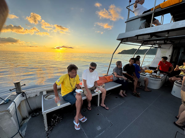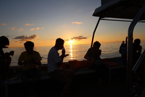 初日の夕方は、サンセットクルーズ 波もなく・雲もなく 最高!!