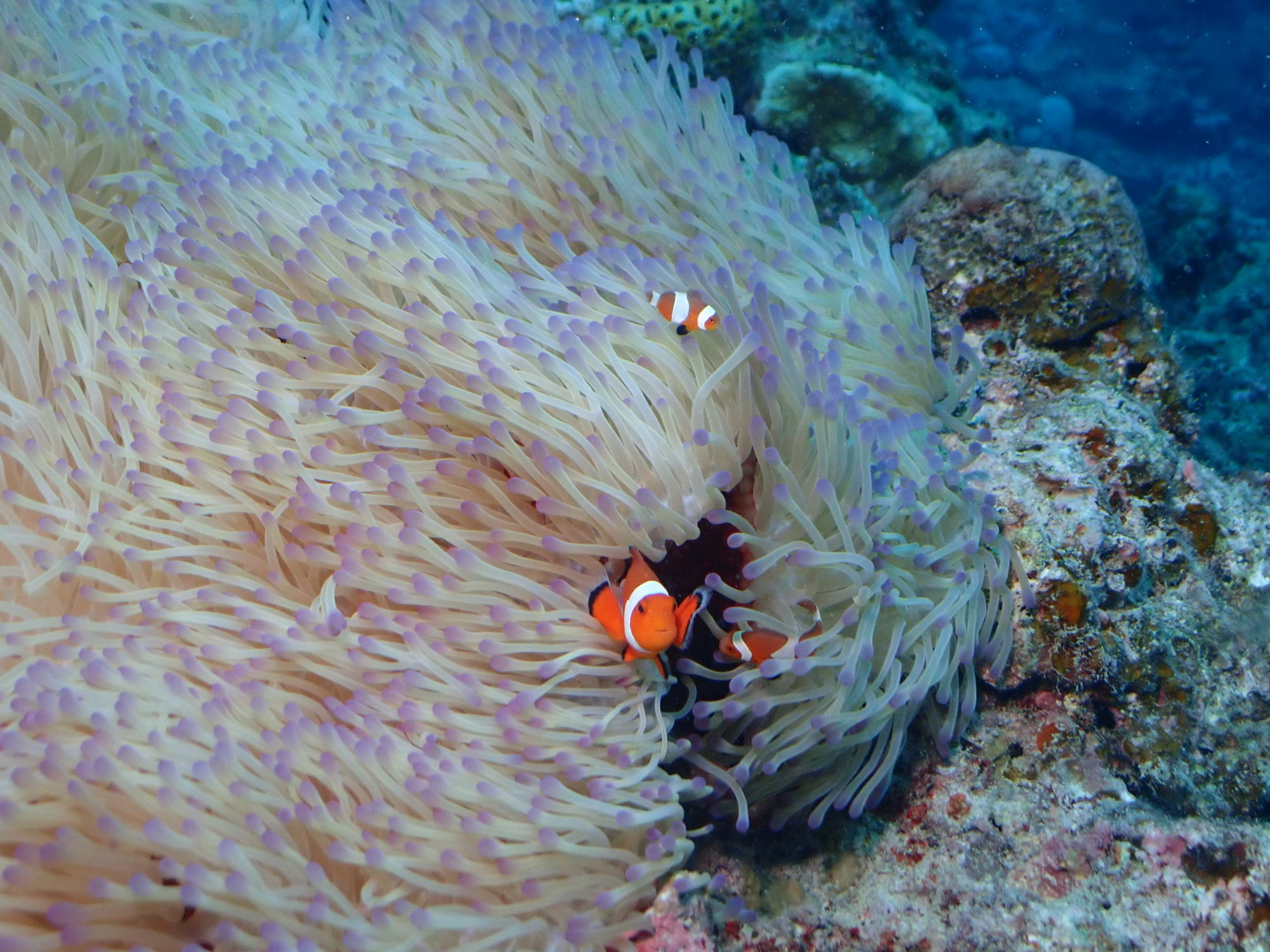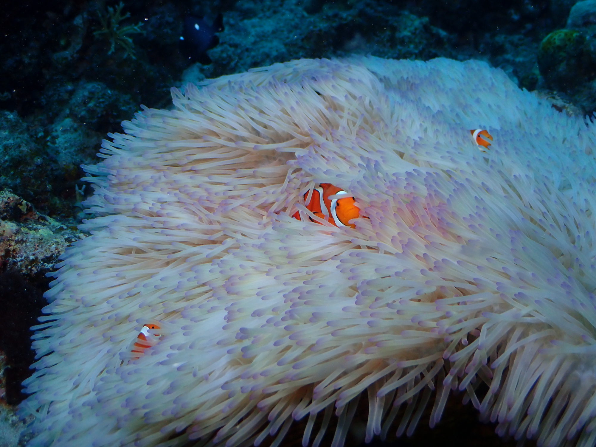 別の家族のカクレクマノミの家族みんなで楽しそうに生活していました。