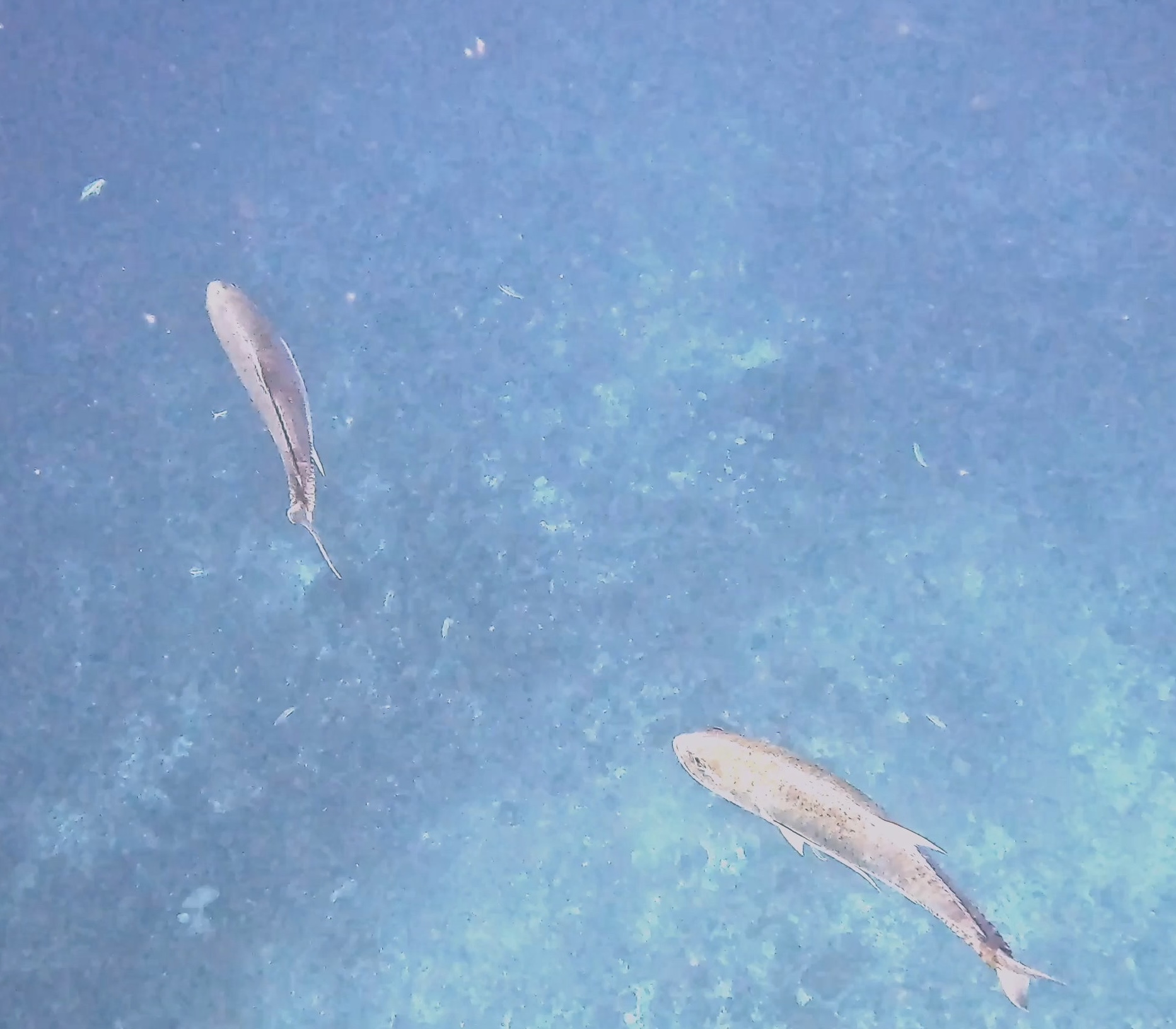 前兩支在下曾根,水中滿滿的黃藍背烏尾鮗與雙帶烏尾鮗,魚群密密麻麻、閃閃發亮。