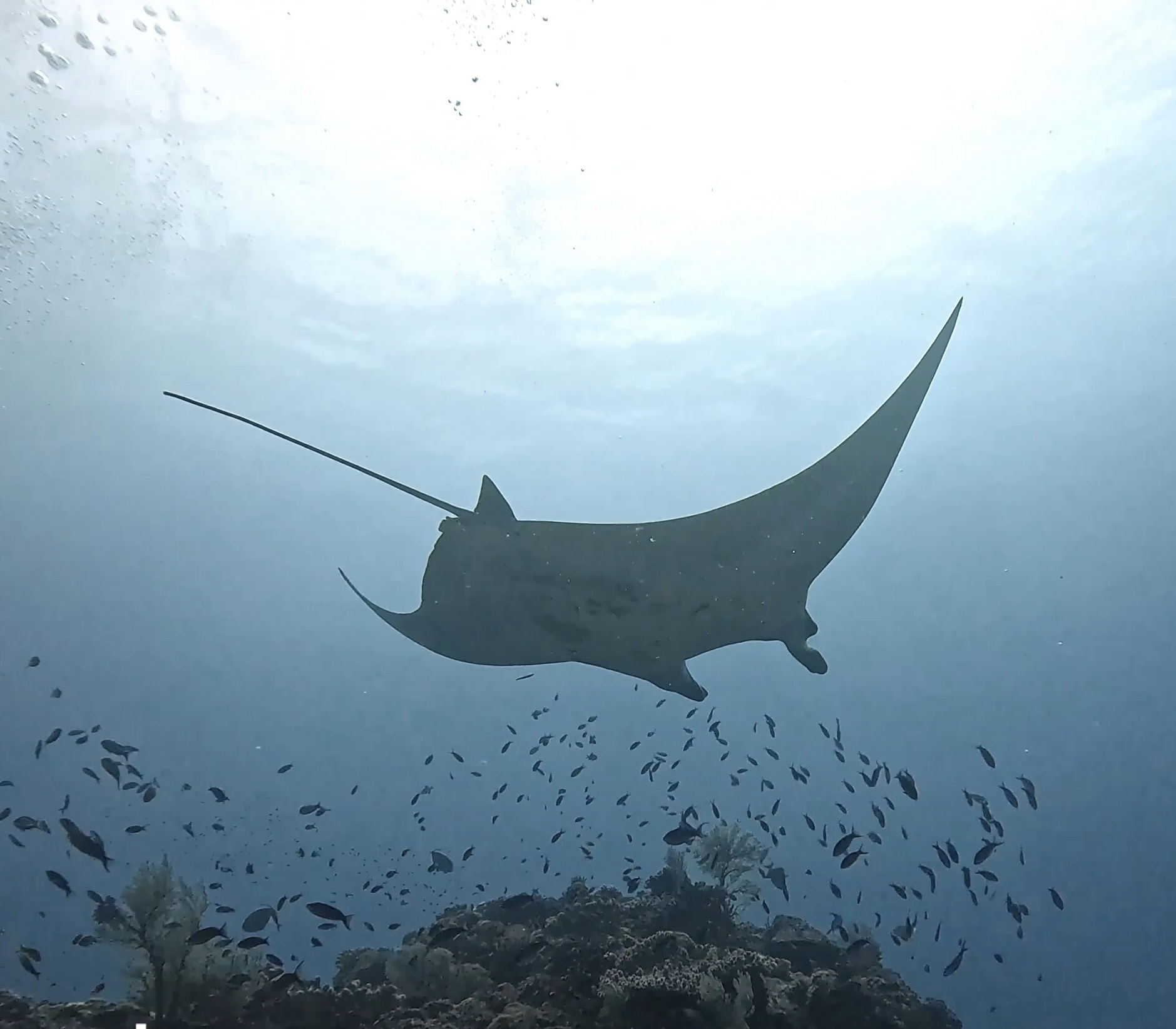 一隻孤獨的大魟魚在我們面前緩緩游過,寧靜又帶點震撼的氣場,讓人目不轉睛。