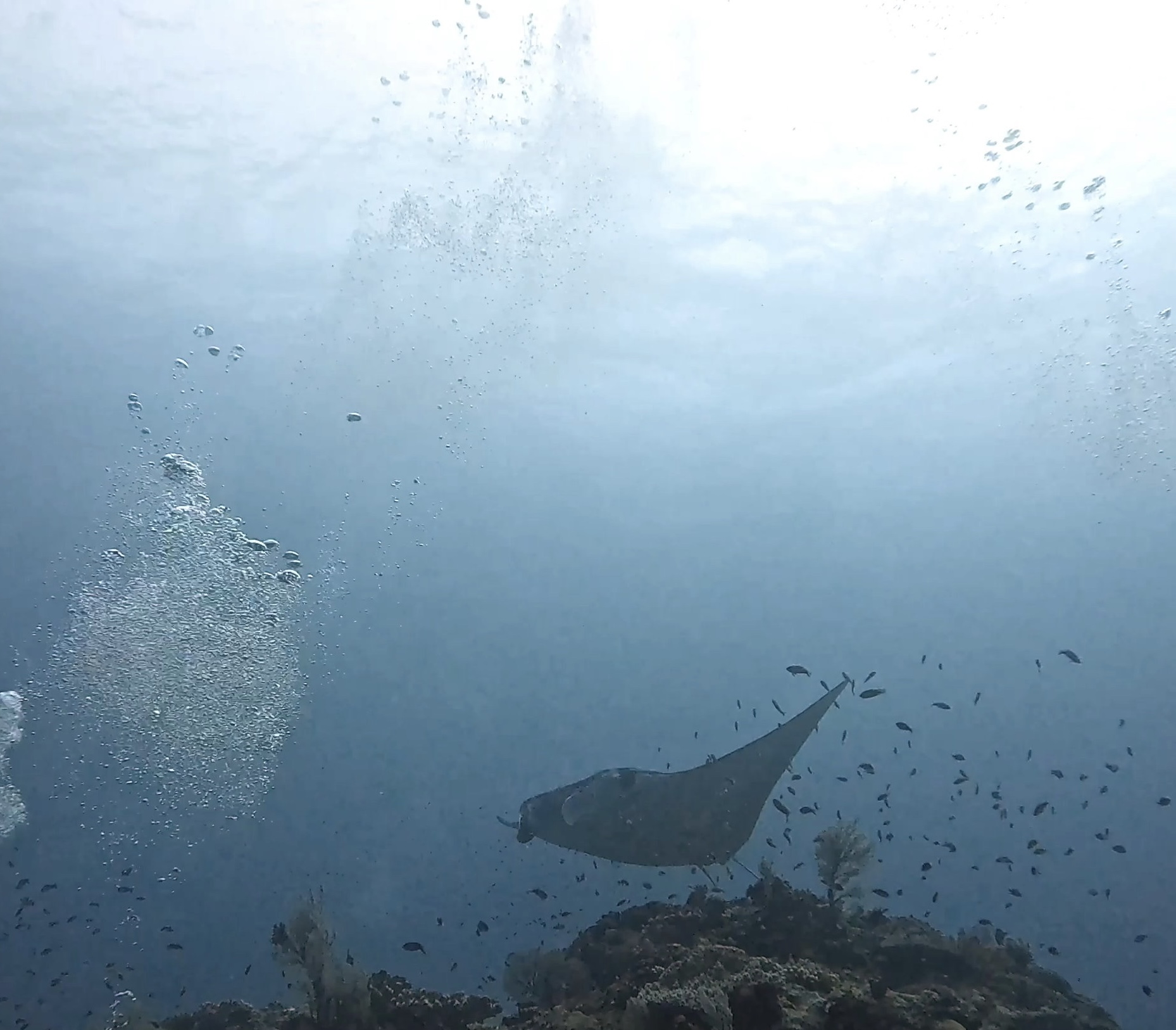 整趟潛水就待在那個位置,看著牠自由地在藍色的水裡飄動,結束這完美的一天。