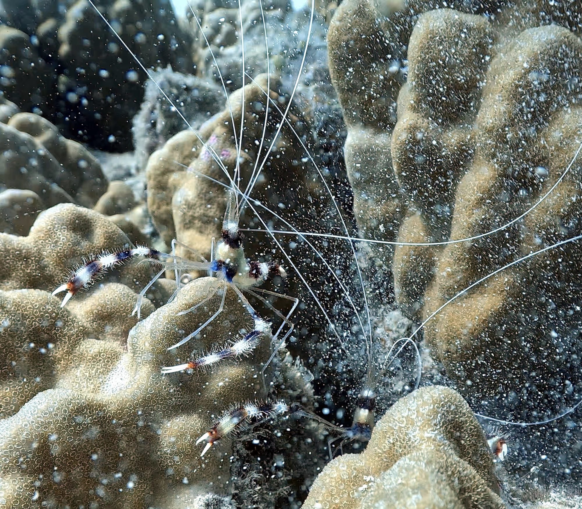 還發現了一隻住在海星上的小蝦,以及藏在石縫裡的兩隻美人蝦,細節滿滿的一支潛。