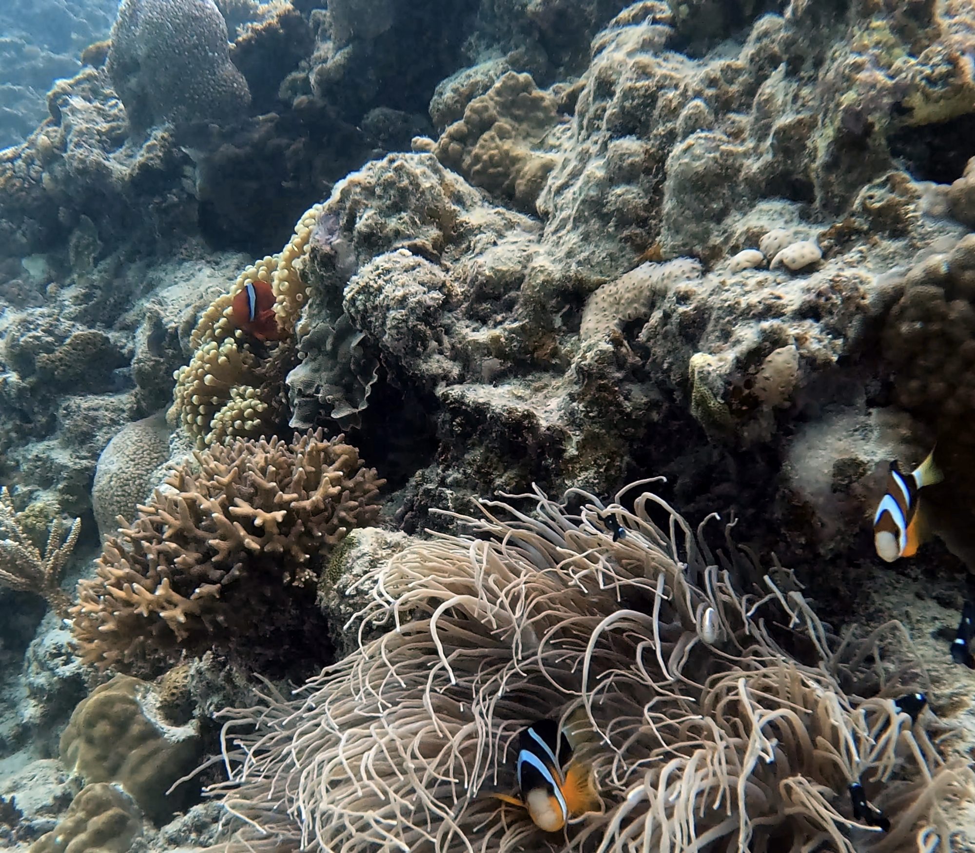 今天帶一對夫妻去ナガンヌ南下兩支,感覺得出來對大海十分好奇。第一支帶他們鑽鑽地形,蝴蝶魚像保鑣一樣跟著我們,還遇到了一大群雀鯛和可愛的番茄小丑。