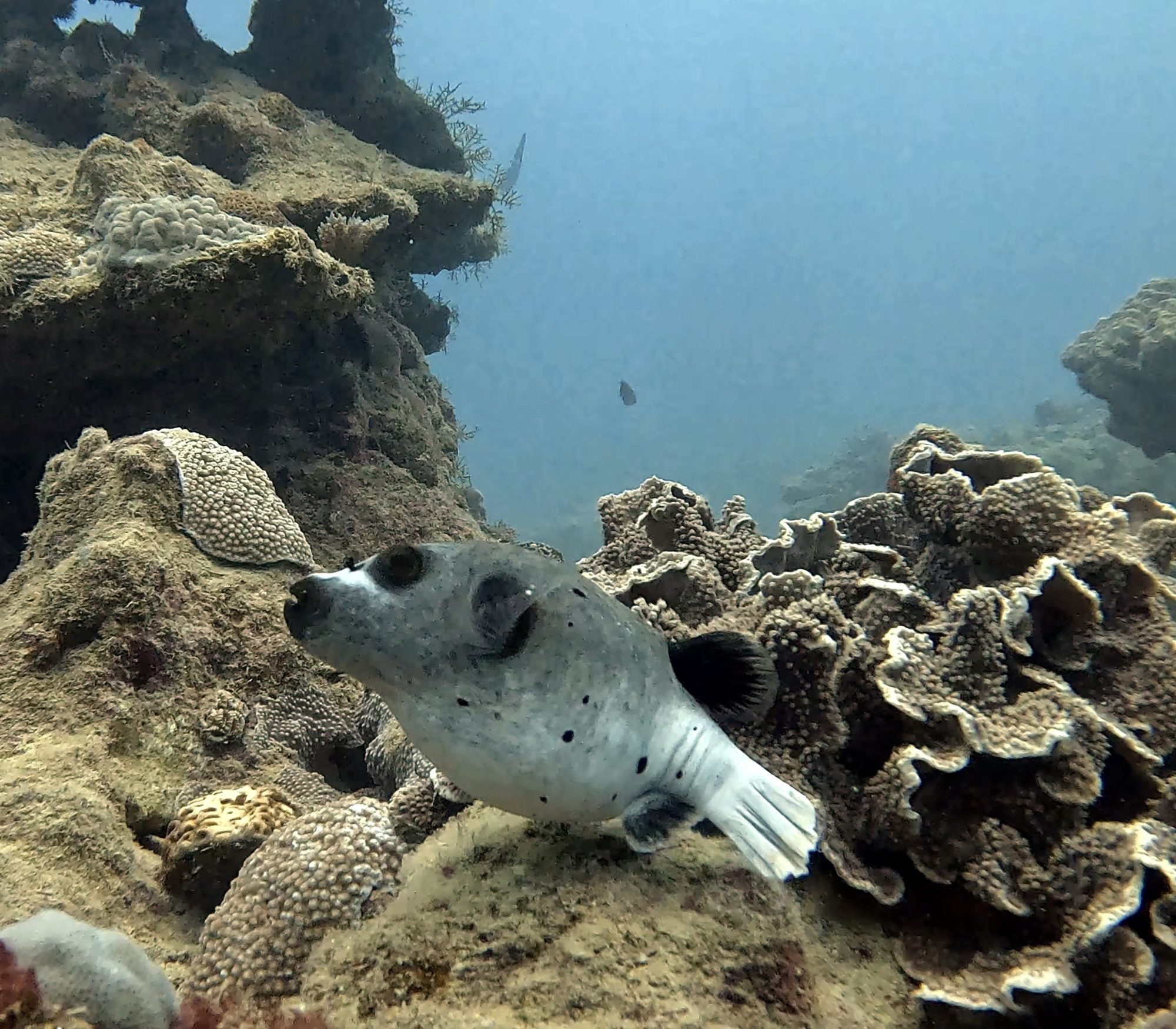 黑斑叉鼻魨(學名:Arothron nigropunctatus)有個可愛的俗名叫做「狗頭」。牠們睡覺時喜歡找個珊瑚或石頭當枕頭靠著,那副懶洋洋的樣子真的跟家裡的小狗沒兩樣,是潛水員心中的療癒系盟主。