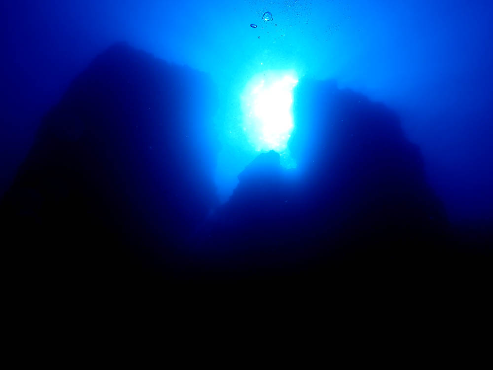沖縄本島の北部辺戸岬でダイビングしませんか?水中からしか行けない辺戸ドーム 世界的にも非常に珍しい海底鍾乳洞ポイントがあります。