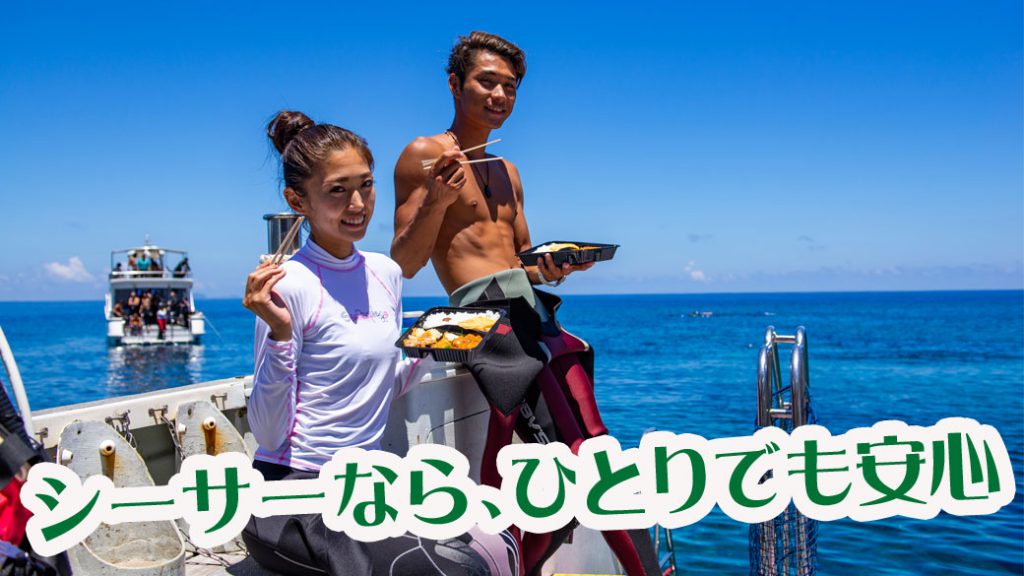 シーサーでは、「ひとりでも安心!」を掲げています。1名でも複数名でも来られたゲストの方が、不安にならないように、スタッフ全員で、しっかりとサポートします。リクエストや、不安な事などスタッフから聞き、お会いしてから、終わるまで1日を通して楽しめるように全力サポートしていきます。