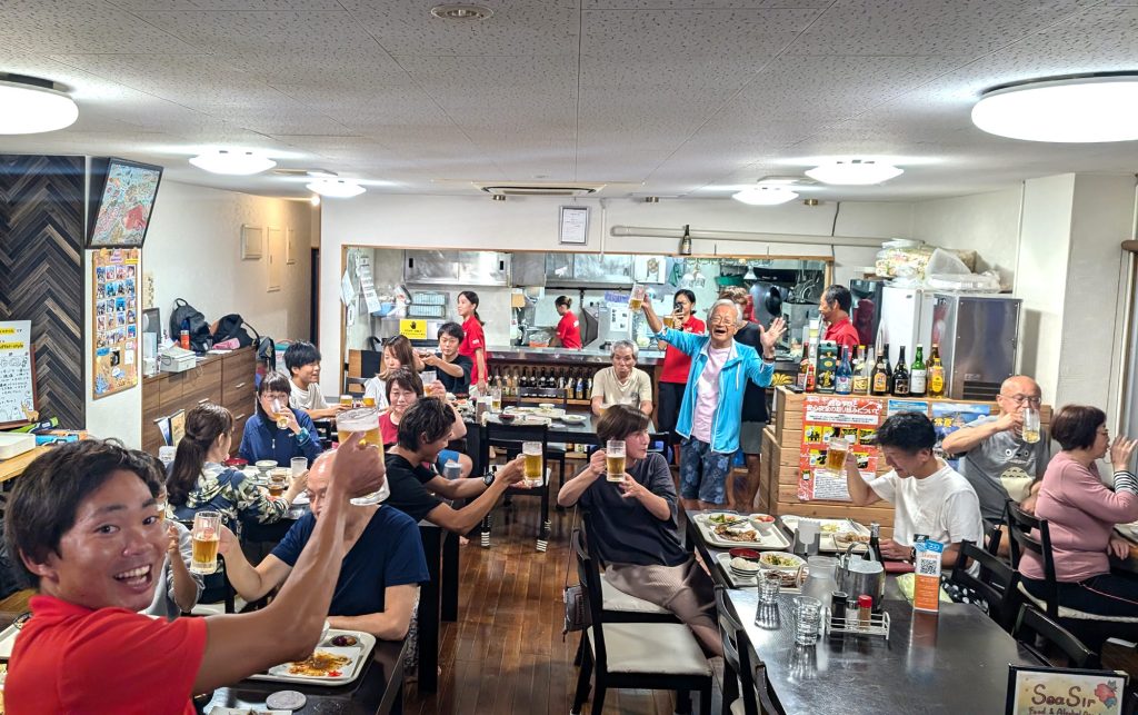 スローダイブ倶楽部の皆さん笑顔で参加して、あり乾杯!!