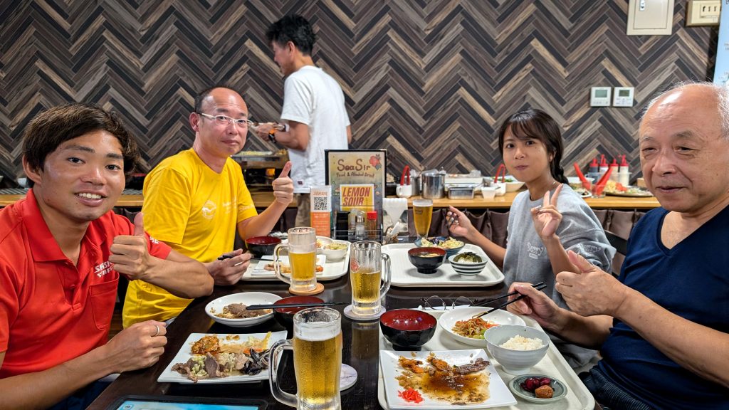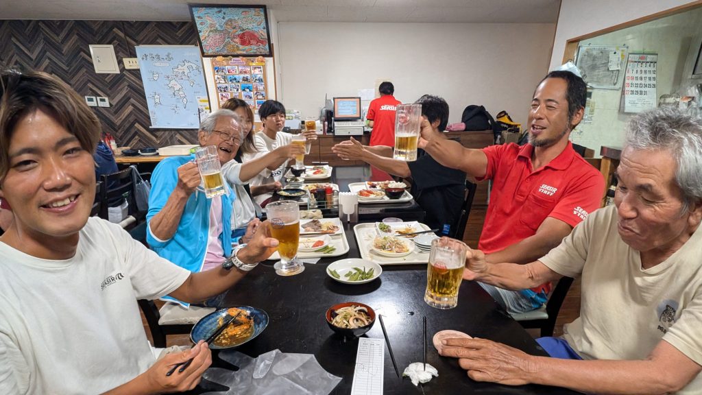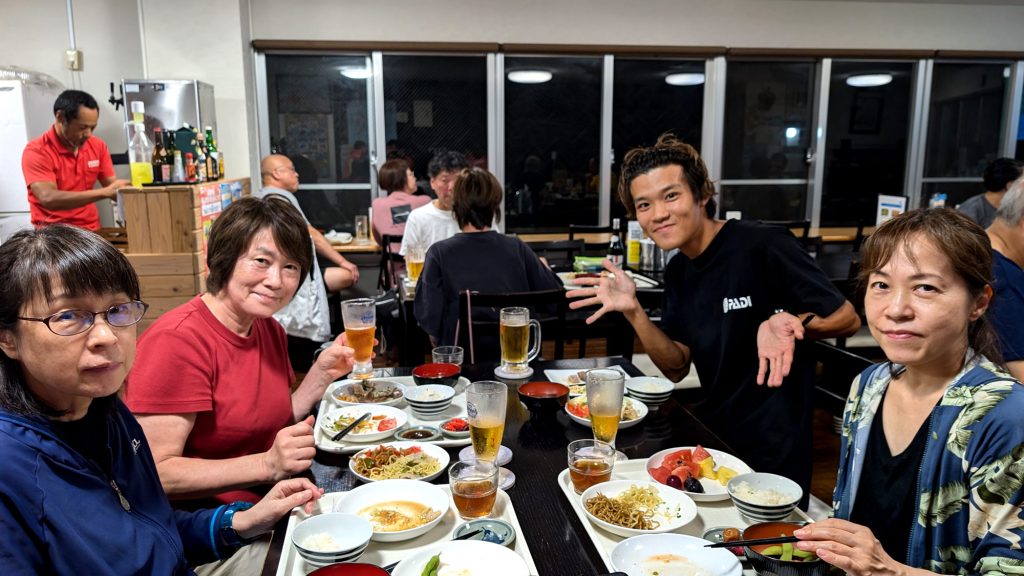 ソラくんの乾杯の音頭でスタートしたお食事会、ダイビングの後に飲むお酒は格別です。