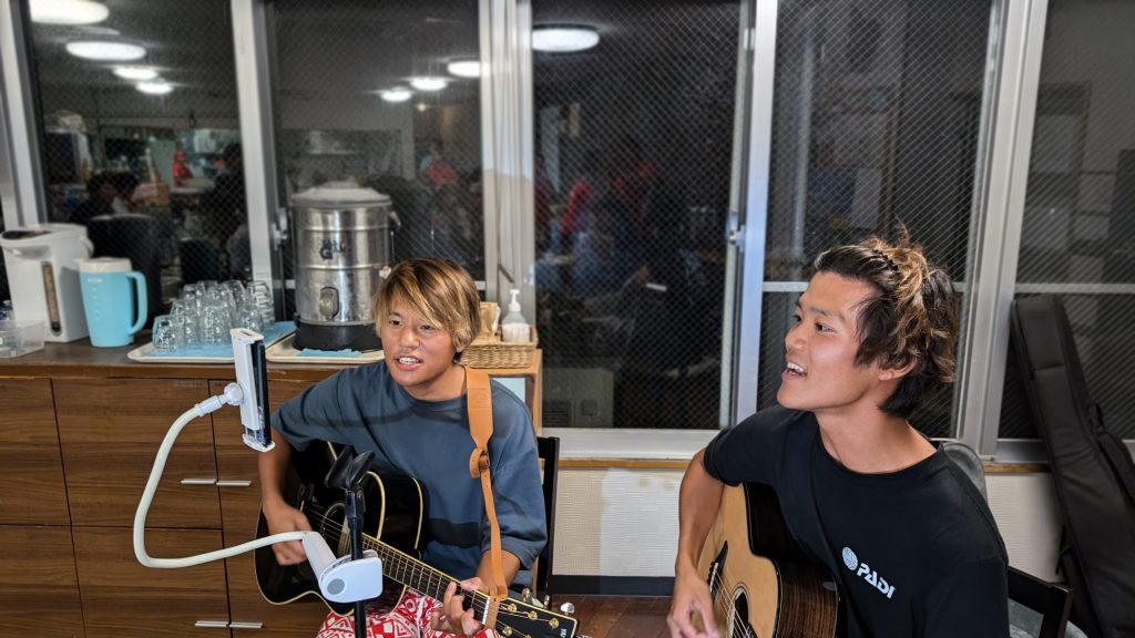 お食事の後は、阿嘉島スタッフによるギター弾き語りもありました。